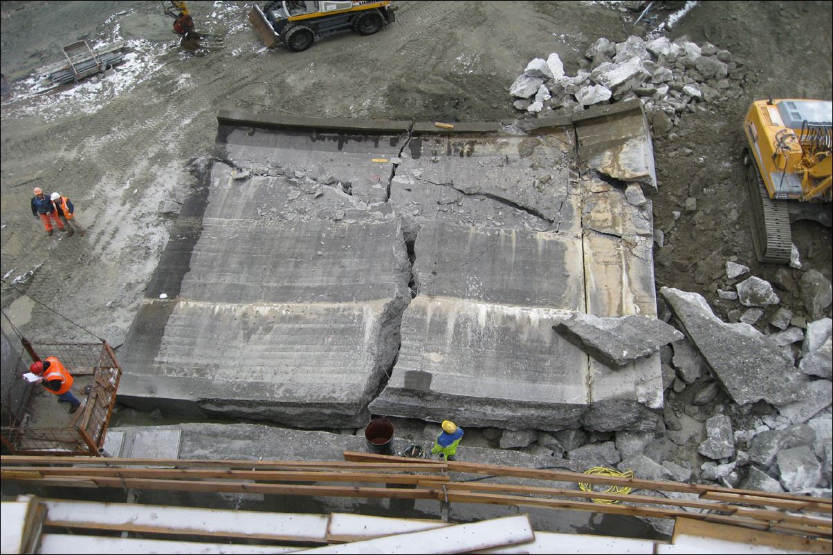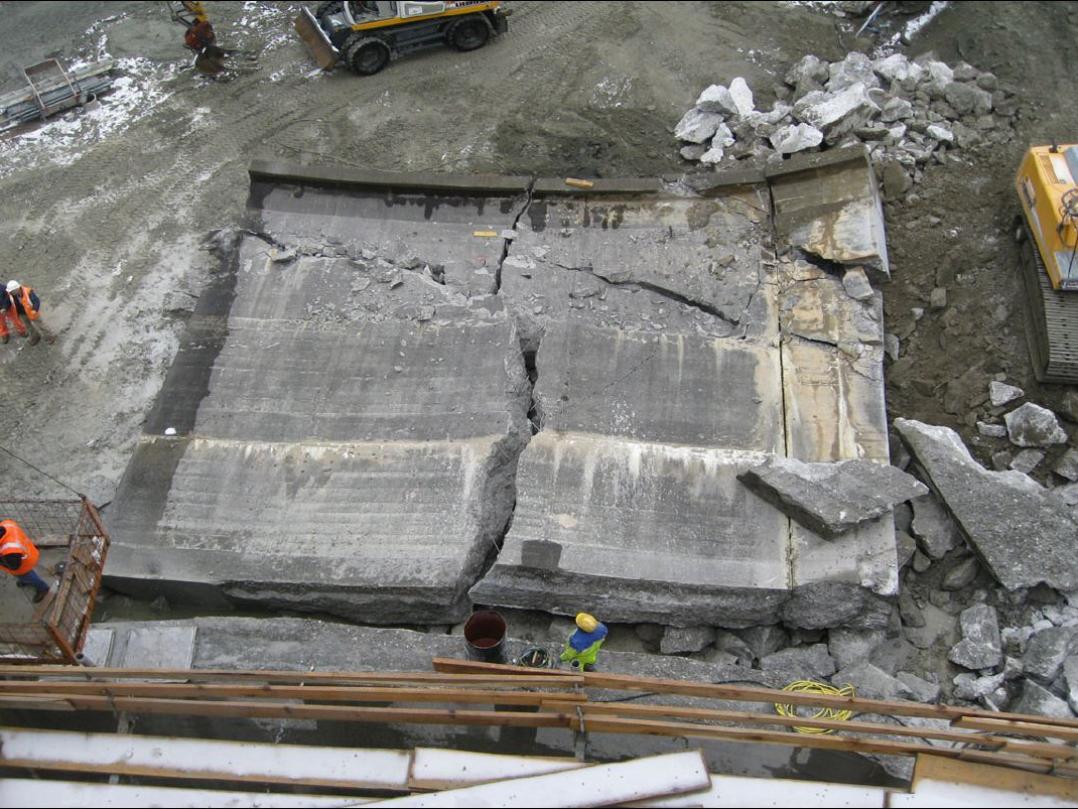 Abbruch der alten Staumauer mit Hilfe der Diamantseilsäge